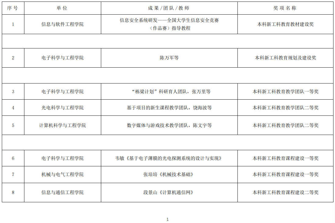 按照《2021年电子科技大学“腾讯奖教金”评选实施办法》《关于开展2021年“腾讯奖教金” 评选工作的通知》,经教师或团队申请、所在单位审核推荐、教务处复核、专家组评审、公示等环节,现将2021年电子科技大学“腾讯奖教金”获奖名单公布如下: